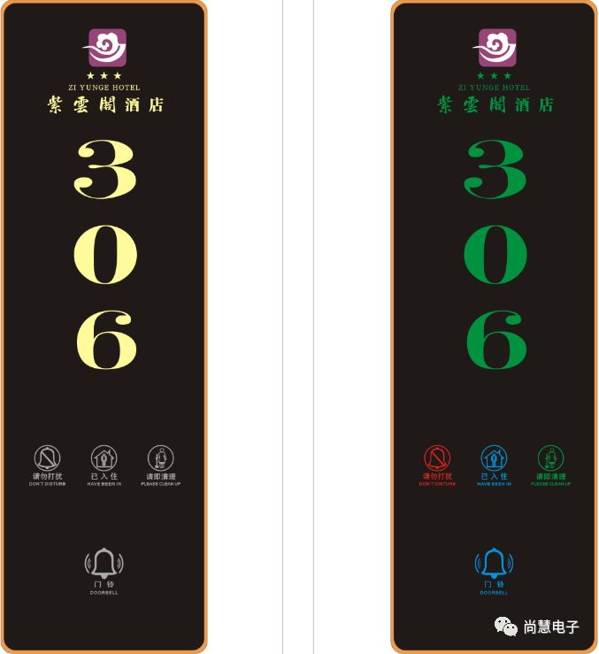 尚慧電子雙色門牌專為酒店精心設(shè)計的“五合一”房號門鈴系統(tǒng)、“請即清理”極具人性化設(shè)計,讓客房內(nèi)外溝通隨心所欲,體貼的“請勿打擾”功能給客房主人一個寧靜舒適的私人空間,充分體現(xiàn)產(chǎn)品的智能化和科技感,酒店給客房主人提供的清晰、簡單的人性化服務(wù),使客人輕松擁有屬于自己的私密空間,入住前暖黃光,入住后綠光,房態(tài)一目了然。