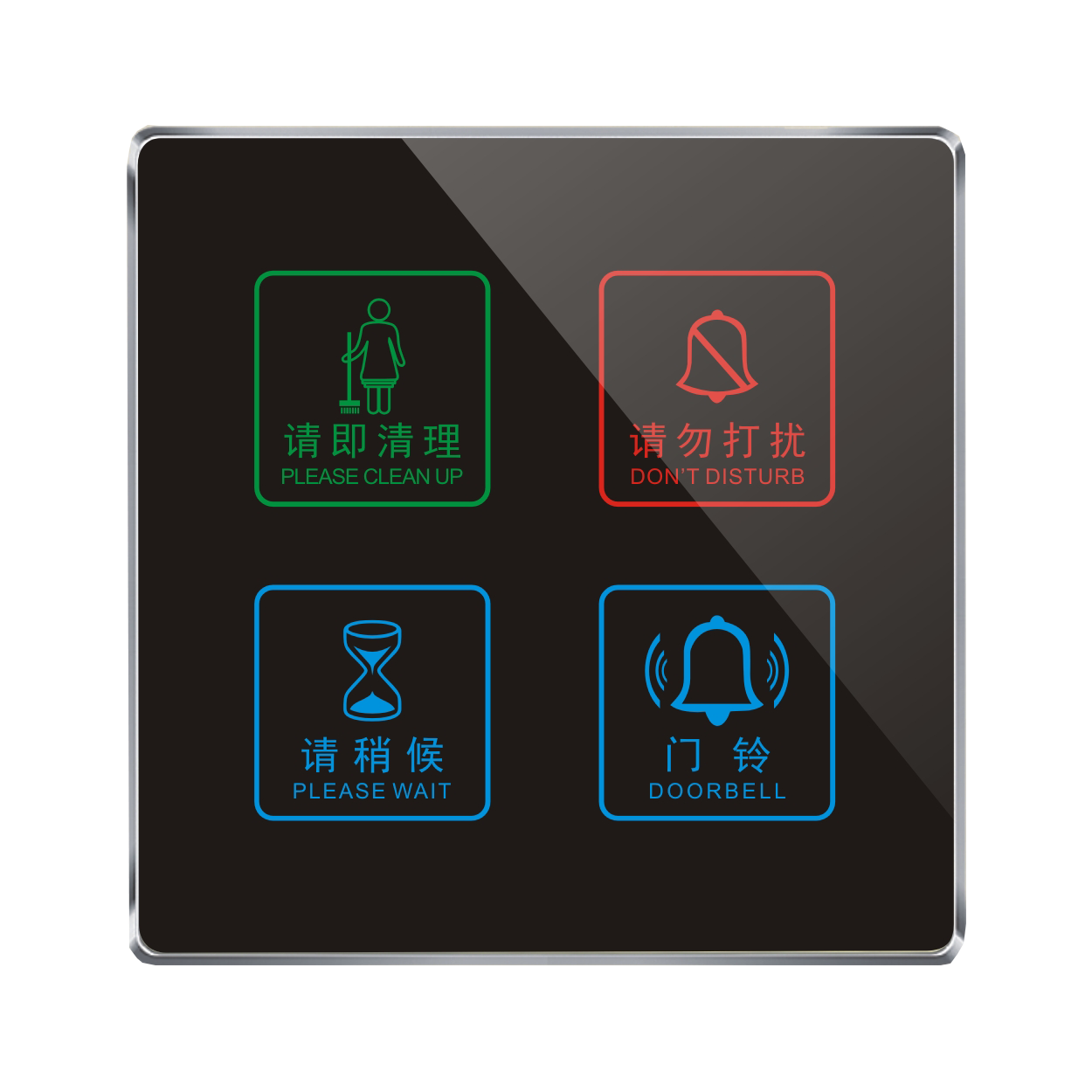 2、客人按下房間內(nèi)的"請勿打擾”開關(guān),液晶屏的"請勿打擾”圖案背光亮起,門外顯示屏中提示請不要打擾,此時門鈴按鍵不起作用。