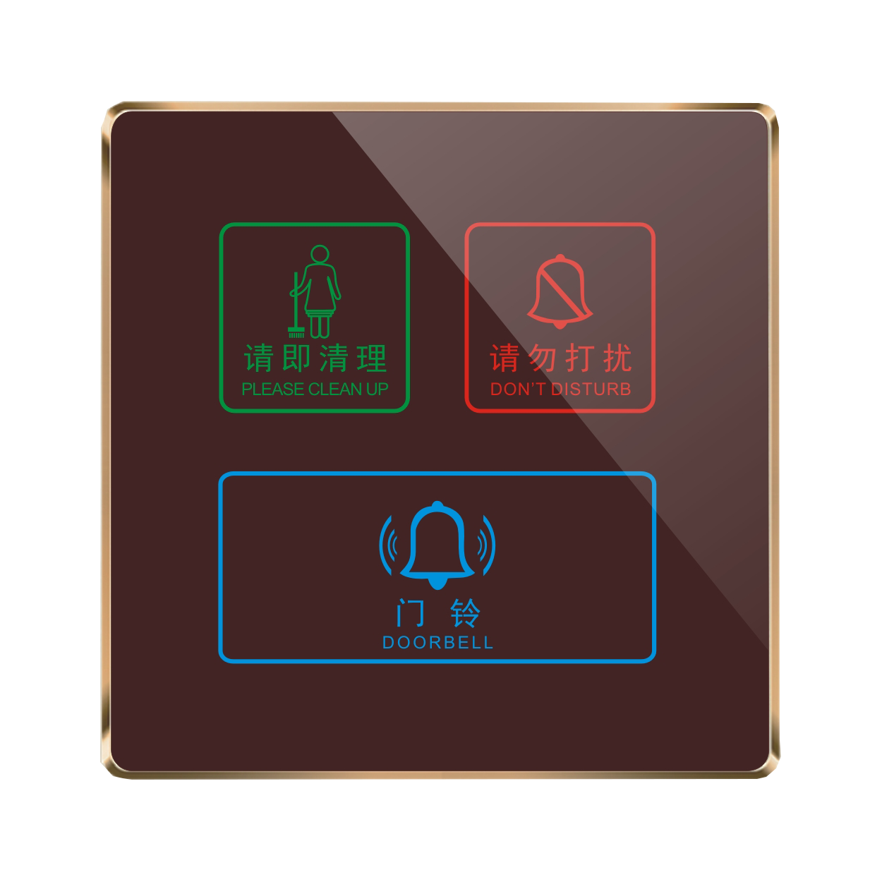 2、客人按下房間內(nèi)的"請(qǐng)勿打擾”開(kāi)關(guān),液晶屏的"請(qǐng)勿打擾”圖案背光亮起,門(mén)外顯示屏中提示請(qǐng)不要打擾,此時(shí)門(mén)鈴按鍵不起作用。