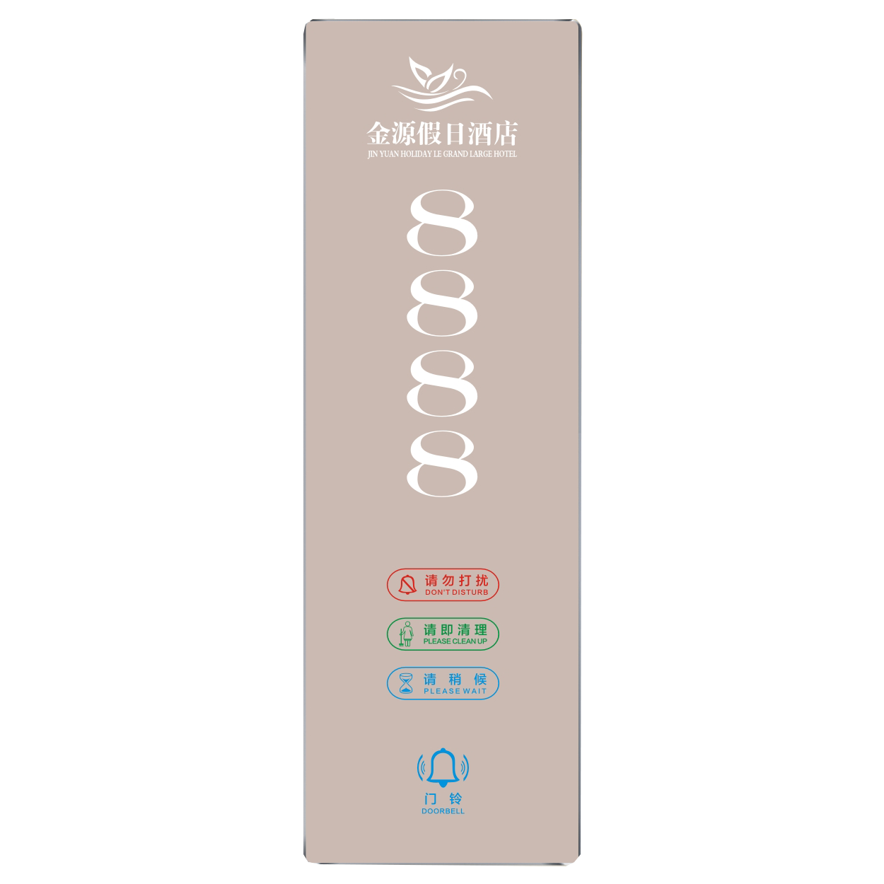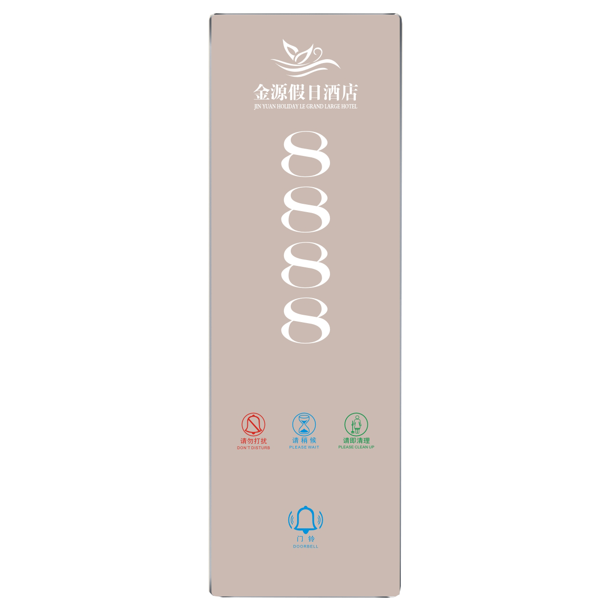 2、客人按下房間內(nèi)的"請勿打擾”開關(guān),液晶屏的"請勿打擾”圖案背光亮起,門外顯示屏中提示請不要打擾,此時門鈴按鍵不起作用。